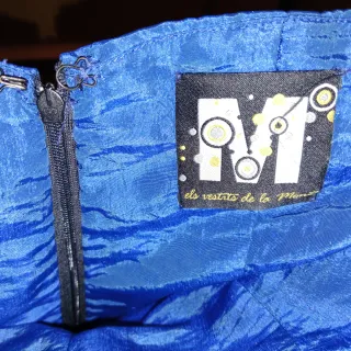 Vestido de fiesta de diseño exclusivo de Montse Caballero. Un modelo elegante y llamativo. - Diseño strapless con detalles plateados. - Falda con volumen y capas. - Acabado brillante.