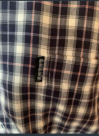 Camisa corta con un diseño de rayas verticales y horizontales. - Cuello camisero. - Manga corta. - Cierre de botones.