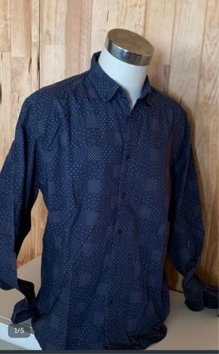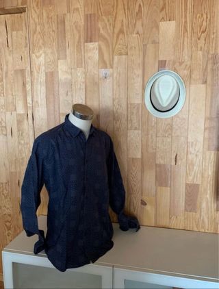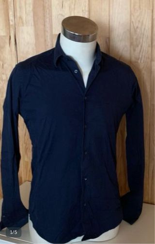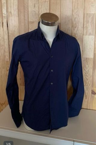 Camisa de manga larga de la marca Zara. - Color azul marino. - Cuello clásico. - Cierre de botones.