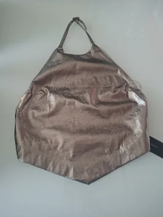 Top de Bershka con un acabado metalizado brillante. - Diseño moderno y llamativo. - Material sintético con textura. - Asa ajustable.