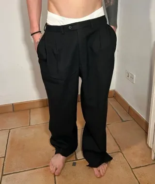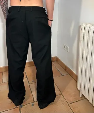 Pantalones de vestir de corte clásico. - Color negro. - Diseño con pinzas delanteras. - Cintura con trabillas para cinturón.