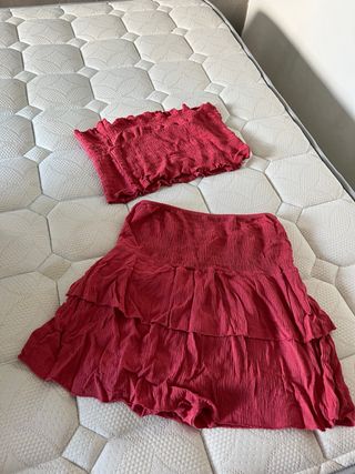 Falda de Zara con un tejido ligero y brillante. - Diseño plisado. - Cintura elástica. - Acabado metalizado. Estiliza la figura al ajustar la cintura y luego caer en finos pliegues por el tejido fluido. Da talla desde 38 a 42. Ideal para un outfit elegante y moderno combinada con tops, blusas o jerseys.