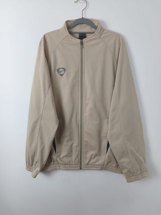 ▪️📏 Medidas: 71cm de largo x 56.5cm de axilas. Chaqueta Nike Vintage - Estilo Retro 90s/2000s Espectacular chaqueta de entrenamiento Nike original de finales de los 90 (era pre-Total 90). Una pieza de coleccionista difícil de encontrar en este estado y color. • Color: Beige / Crema (muy versátil y tendencia earth tones). • Estado: Muy buen estado vintage (revisar fotos para detalles). • Talla: M (Tallaje de la época, cómodo y ligeramente boxy). Altura recomendada 178 cm según etiqueta. • Detalles: Logotipo de Nike bordado en el pecho dentro de un óvalo, cierre de cremallera completa funcional, bolsillos laterales y puños elásticos.