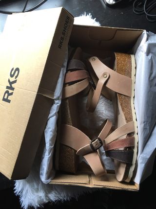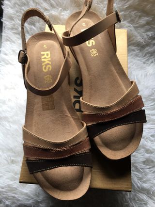 sandalia de piel con cuña de un centímetro de corcho tonos canelos sin estrenar talla 41