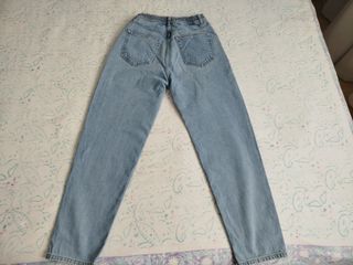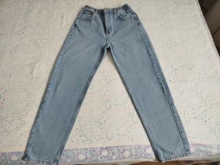 Pantalones vaqueros de tiro alto, de color azul claro y corte ancho. Tienen una tela fina y fresquita. - Tienen cintura elástica con cordón. - Son de un tejido ligero de algodón. - Están en buen estado. - No se hacen envíos.