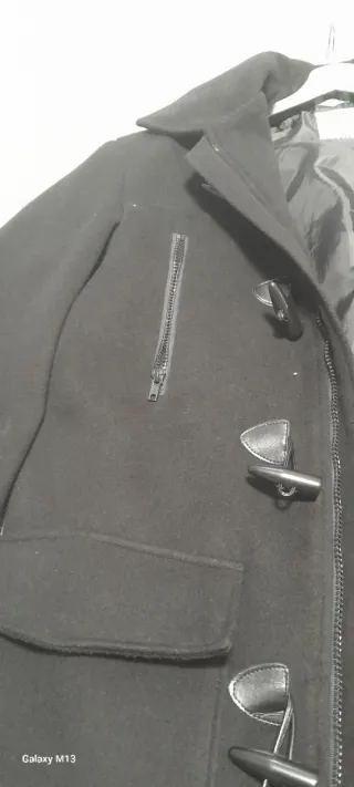 Abrigo negro con cremallera y botones