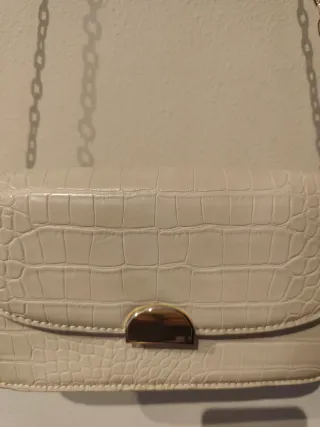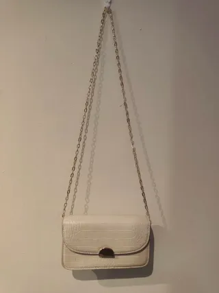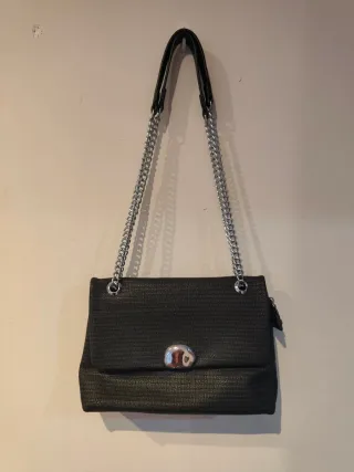 Bolso mediano Cadena plateada Posibilidad de ponerlo a dos larguras diferentes Cierre imán 27 cm x 18 cm Base 9 cm de ancho