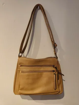 Bolso de hombro crudo Correa marrón Cierre imán y cremallera 27cm x 23cm Base con topes, anchura 14 cm