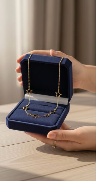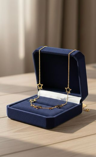 Elegante collar de oro con un diseño de estrellas. - Cadena fina y delicada. - Colgantes de estrellas huecas.