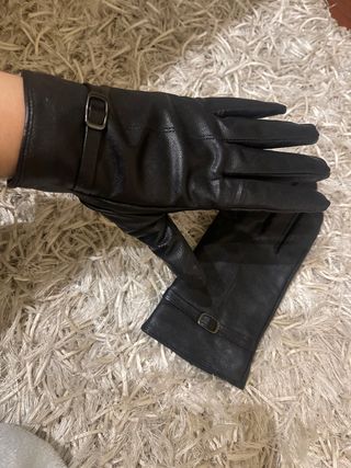 Elegantes guantes de cuero. - Material: Cuero - Talla: S-M - Detalle de hebilla en la muñeca