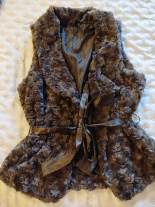Chaleco de pelo sintético muy suave al tacto, con un diseño elegante. - Tejido exterior de pelo rizado. - Forro interior liso. - Cinturón de lazo a juego para ajustar la cintura.