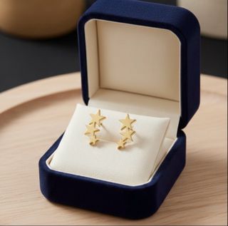 Elegantes pendientes con un diseño de estrellas en cascada. Perfectos para añadir un toque de brillo. - Diseño de tres estrellas superpuestas. - Acabado pulido brillante. No incluir la caja es para hacer fotos