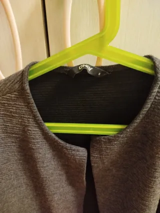 Elegante blazer gris de la marca ONLY, ideal para cualquier ocasión. - Diseño largo y abierto. - Tejido texturizado con finas líneas horizontales. - Cuello redondo. - Manga larga.
