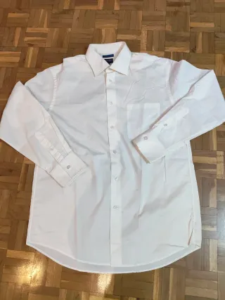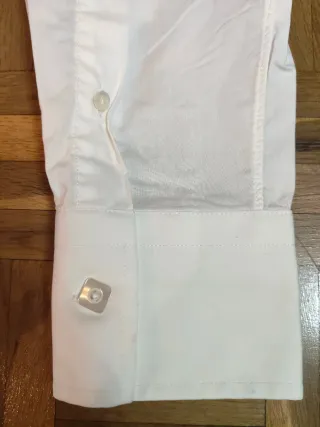 👔 Camisa de hombre de la marca by KENZO Clasic Fit (corte clásico). Ideal para trajes e ir vestido deportivo o simplemente con tu estilo. 🎨Color: blanca de algodón. Botones originales de la marca La camisa está en perfectisimas condiciones de uso 📐T-44 - 17 1/2 📏Medidas: * De axila a axila: 54 cm * Largo: 77 cm * Largo manga: 62 cm 📦Envío entre 24 y 48h. Si se compra en viernes tarde se envía el lunes por la mañana. La prenda está revisada, lavada y planchada lista para estrenar cuando recibas el paquete. - Cuello clásico. - Puños abotonados. - Bolsillo en el pecho.