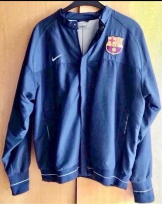 Chaqueta deportiva del FC Barcelona. - Logo de Nike bordado. - Escudo del FC Barcelona en el pecho. - Cuello mao con cierre de botones a presión. - Puños y bajo elásticos con ribete blanco.