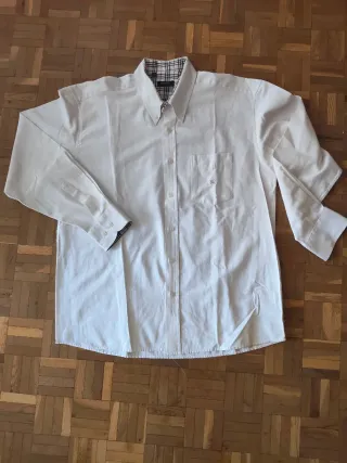👔 Camisa de vestir o informal de hombre, confeccionada en 100% algodón. Puños y borde interior de camisa de cuadros marrón. Totalmente lisa. 📐 T: XXL - Cuello clásico. - Bolsillo en el pecho. - Puños abotonados. - Diseño liso en color blanco.