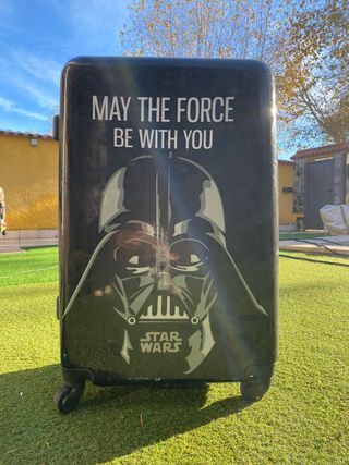 Maleta temática de Star Wars con diseño de Darth Vader y la icónica frase May the Force be with you. - Diseño frontal de Darth Vader. - Frase May the Force be with you en la parte superior. - Logo de Star Wars en la parte inferior.