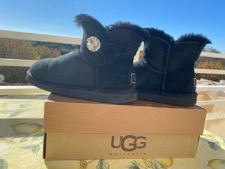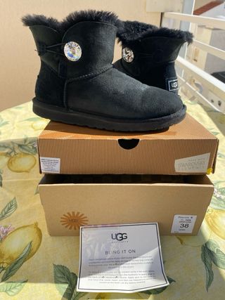 Botas UGG de ante negro con detalles de Swarovski. Un toque de brillo para tus pies. - Adorno de cristal Swarovski en el lateral. - Forro interior de pelo suave. - Suela de goma antideslizante.