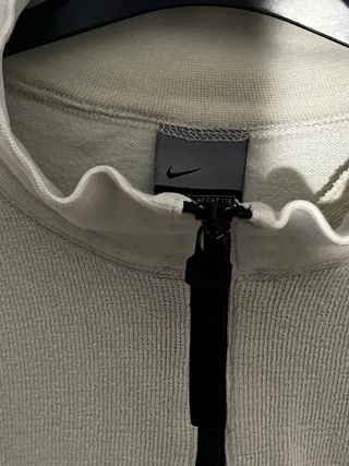Sudadera con cremallera de la marca Nike. - Color beige con detalles en negro. - Talla M.