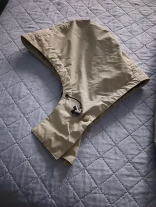 Chaqueta impermeable con capucha, ideal para días de lluvia. - Cierre de cremallera. - Bolsillos laterales con botón. - Cordón ajustable en la cintura y capucha.