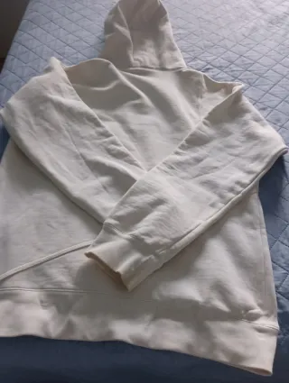 Sudadera con capucha de color blanco. Es una prenda cómoda y versátil. - Capucha ajustable. - Tejido suave al tacto.
