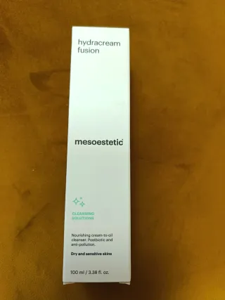 Limpiador facial Hydracream Fusion de Mesoestetic. - Formato: Nourishing cream-to-oil cleanser. - Ideal para pieles secas y sensibles. - Contiene postbióticos y protección antipolución. - Tamaño: 100 ml / 3.38 fl. oz.