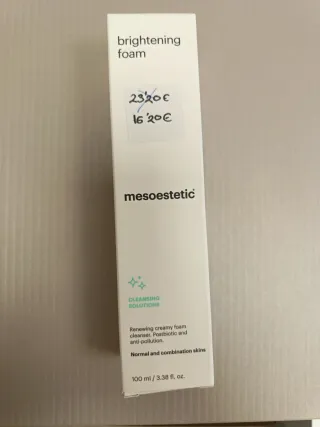 Limpiador facial en espuma de la marca Mesoestetic. - Formato: 100 ml / 3.38 fl. oz. - Tipo de piel: Normal y mixta. - Beneficios: Limpiador cremoso, postbiótico y antipolución.