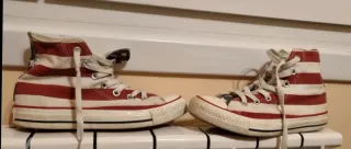 Zapatillas altas Converse All Star con diseño de la bandera de Estados Unidos. - Diseño de rayas rojas y blancas. - Detalle de estrella azul en el lateral. - Cordones blancos.