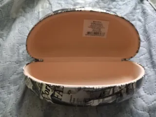 Funda para gafas con un diseño de collage de revistas de moda y celebridades. - Estampado en blanco y negro. - Cierre seguro para proteger tus gafas.
