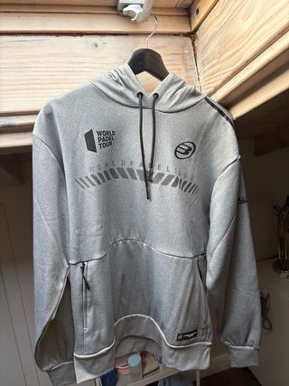 Sudadera con capucha de la marca Bullpadel. - Color gris jaspeado. - Logo de Bullpadel en el pecho. - Bolsillo canguro. - Cremallera lateral. - Puños y bajo elásticos. - Con etiqueta - Talla L