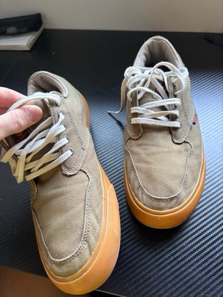 Botines de piel vuelta en color beige. - Material exterior: Piel vuelta. - Cierre con cordones. - Costuras decorativas. es de la sección de hombre con lo cual es un 40 hermoso, de hecho yo uso un 41 y bien pero para gustos