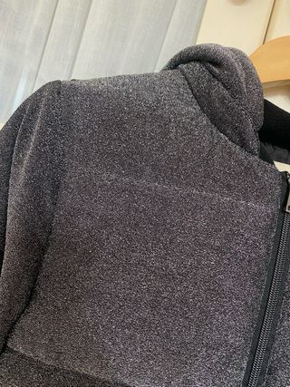 Chaqueta con un diseño brillante y moderno. - Tejido con efecto de brillos. - Capucha integrada. - Cierre de cremallera frontal. - Bolsillos laterales.