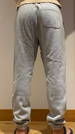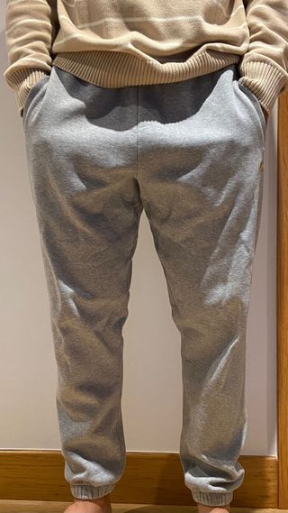 Pantalón de chándal clásico de la marca Carhartt en color gris jaspeado. Es una prenda de excelente calidad, muy resistente y cómoda para el día a día. - Estado: Muy bueno (8/10). Sin manchas ni roturas, el tejido se mantiene firme. - Composición: 58% Algodón y 42% Poliéster (interior suave tipo forro polar). - Detalles: Cintura elástica con cordón ajustable, puños elásticos en los tobillos y el icónico logo del "C-logo" bordado en dorado en el lateral. - Talla: L (Corte cómodo, ni muy ancho ni muy estrecho). Ideal tanto para deporte como para un look casual de diario.