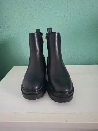 Botín de estilo Chelsea, ideal para añadir un toque moderno a tu look. - Diseño con tachuelas doradas. - Paneles elásticos laterales. - Suela gruesa y resistente.
