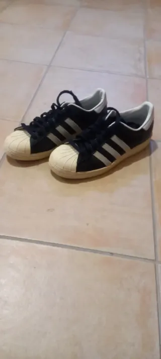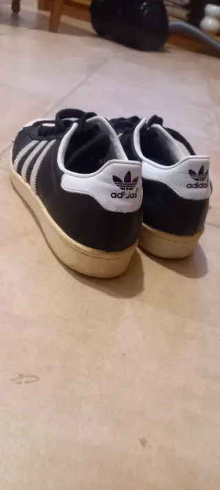 Zapatillas deportivas Adidas Superstar en color negro y blanco. Un clásico para el día a día. - Diseño icónico con las tres rayas. - Detalle del logo Adidas en el talón.