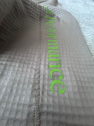 Polar para hombre, sin estrenar. Presenta un diseño texturizado con detalles en verde. - Tejido con patrón de rombos. - Costura lateral reforzada. - Logo vertical en color verde.
