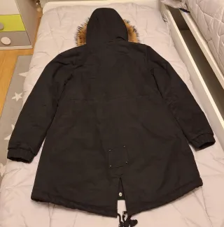 Parka mujer,color negro,con gorro de pelo,el pelo se puede quitar,lleva botones. - Talla L - Cintura ajustable con cordón. - Bolsillos frontales con solapa.