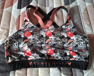 Sujetador deportivo con un divertido estampado de Mickey Mouse. - Diseño cruzado en la espalda. - Banda elástica inferior con logo. - Talla L - Marca,Disney