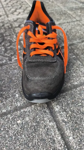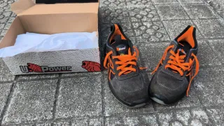 Zapatillas de trabajo U-Power con un diseño moderno y llamativo. - Combinación de colores gris y naranja. - Cierre con cordones. - Detalle de logo en la lengüeta.