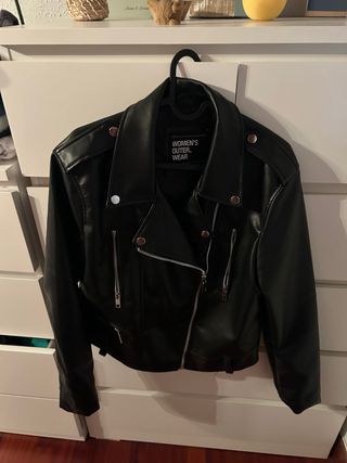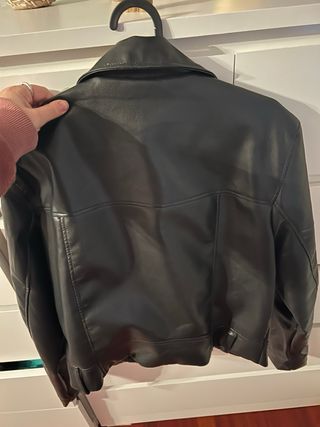 Chaqueta efecto piel negra mujer