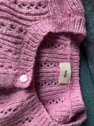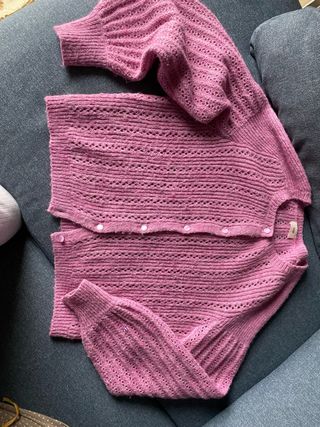 Chaqueta de punto con un diseño delicado y mangas abullonadas. - Tejido de punto con detalles calados. - Cierre de botones frontales. - Mangas largas abullonadas con puños ajustados.