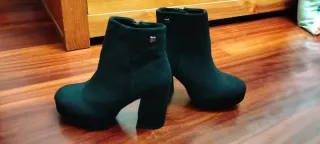 Botines de ante con plataforma. - Tacón grueso. - Cierre de cremallera lateral. - Detalle metálico en el lateral.
