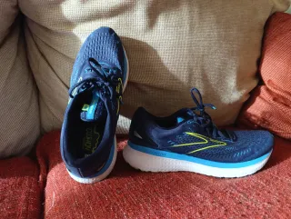 Zapatillas deportivas Brooks Glycerin 19 en color azul con detalles en amarillo. Diseñadas para ofrecer comodidad y rendimiento. - Parte superior de malla transpirable. - Mediasuela con amortiguación. - Suela de goma duradera.