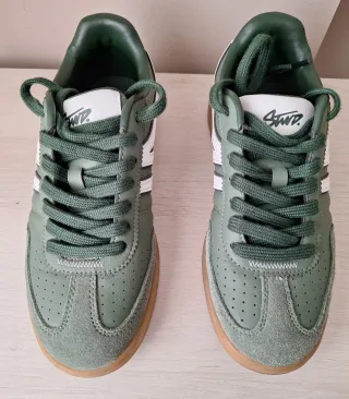 Zapatillas de mujer con un diseño moderno y cómodo. Dos veces puestas. - Combinación de colores verde y blanco. - Talla 37 - Marca,Pull bear