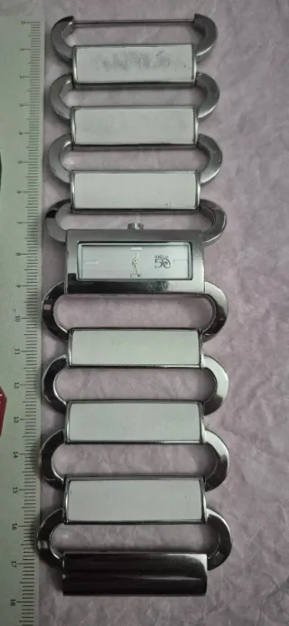 Elegante reloj de pulsera con un diseño moderno. - Esfera rectangular. - Brazalete metálico plateado. Solo tiene un poco marcado el último eslabón, pero es el que queda detrás de la muñeca