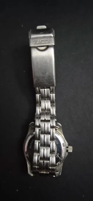 Elegante reloj de pulsera de la marca Racer. - Esfera blanca con números arábigos. - Correa de eslabones acero inoxidable - Resistente al agua.