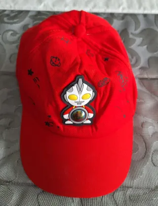 Gorra infantil de color rojo con un divertido diseño. Una vez utilizada,esta nueva. - Talla 3/5 años - Dibujo de personaje. - Estampado de estrellas y planetas.