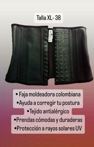 Faja colombiana original de la marca Lycra. Diseñada para ofrecer soporte y comodidad. No da mucha talla Precio algo negociable.... - Fabricada con Lycra. - Color negro. - Talla XL (equivalente a 42 / 14). - Hecha en Colombia.