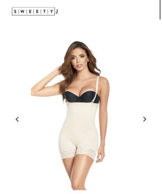 Faja colombiana de compresión alta. - Diseño de cuerpo completo. - Tirantes ajustables. - Cierre frontal con corchetes. - Encaje en los bordes de las piernas.
