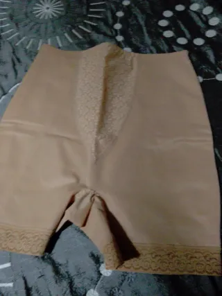 Faja reductora de color beige. - Diseño con detalles de encaje en la parte delantera. - Borde inferior con encaje decorativo.